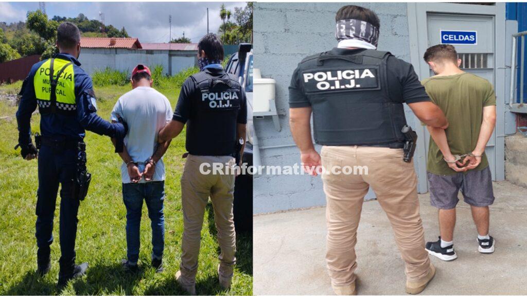 Luego de las labores policiales realizadas por los agentes del OIJ de Puriscal, entre las 10:00 a.m., y 1:00 p.m., de este lunes detuvieron a los sospechosos uno en el sector de Santiago y el otro en el sector de Cerbatana de Puriscal.