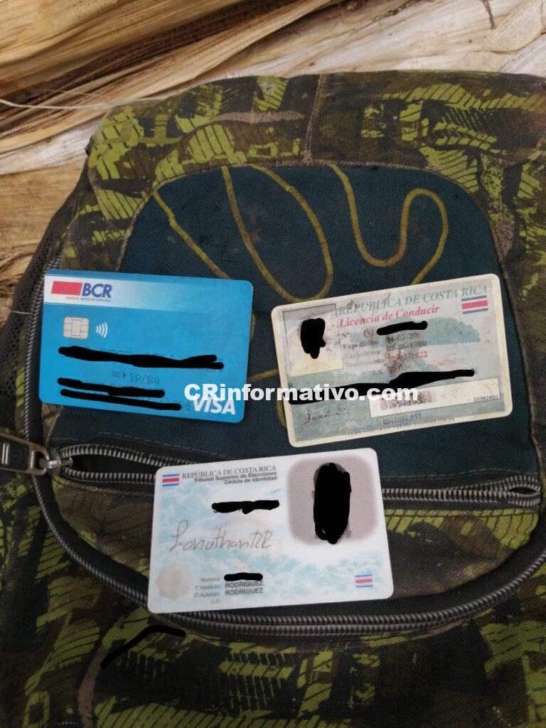 No osbtante, en la huída el antisocial dejó botado un bolso de espalda donde portaba su cédula de identidad, licencia de conducir y hasta las tarjetas del Banco de Costa Rica, por lo que se encuentra plenamente identificado.
