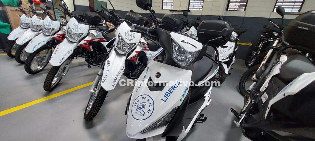 Las autoridades de la CCSS entregaron este martes 3 de mayo, 44 vehículos entre motocicletas, cuadriciclos y scooters a 20 áreas salud, de estos 15 son eléctricos, 11 son motocicletas y cuatro scooters.