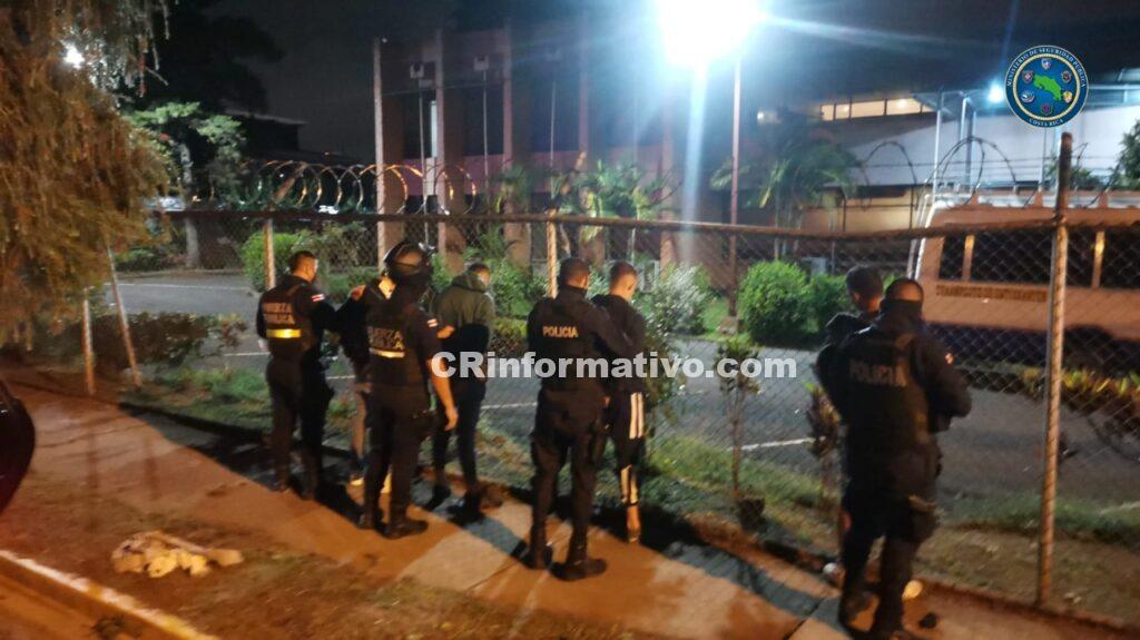 Los aprehendidos son cuatro sujetos de apellidos Solano, Catañeda, Gutiérrez y Hernández, los cuales fueron puestos a las órdenes de agentes del Organismo de Investigación Judicial (OIJ) quienes se presentaron al sitio para realizar las diligencias pertinentes.