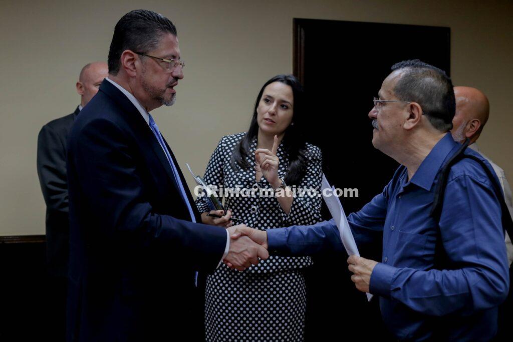 En el encuentro –que se prolongó por aproximadamente dos horas– estuvieron presentes los representantes de la Asociación Nacional de Empleados Públicos y Privados (ANEP), Albino Vargas y Walter Quesada; el secretario del Sindicato Nacional de Enfermería (SINAE), Lenin Hernández; y la presidenta de la Asociación Nacional de Educadores y Educadoras (ANDE), Gilda Montero.
