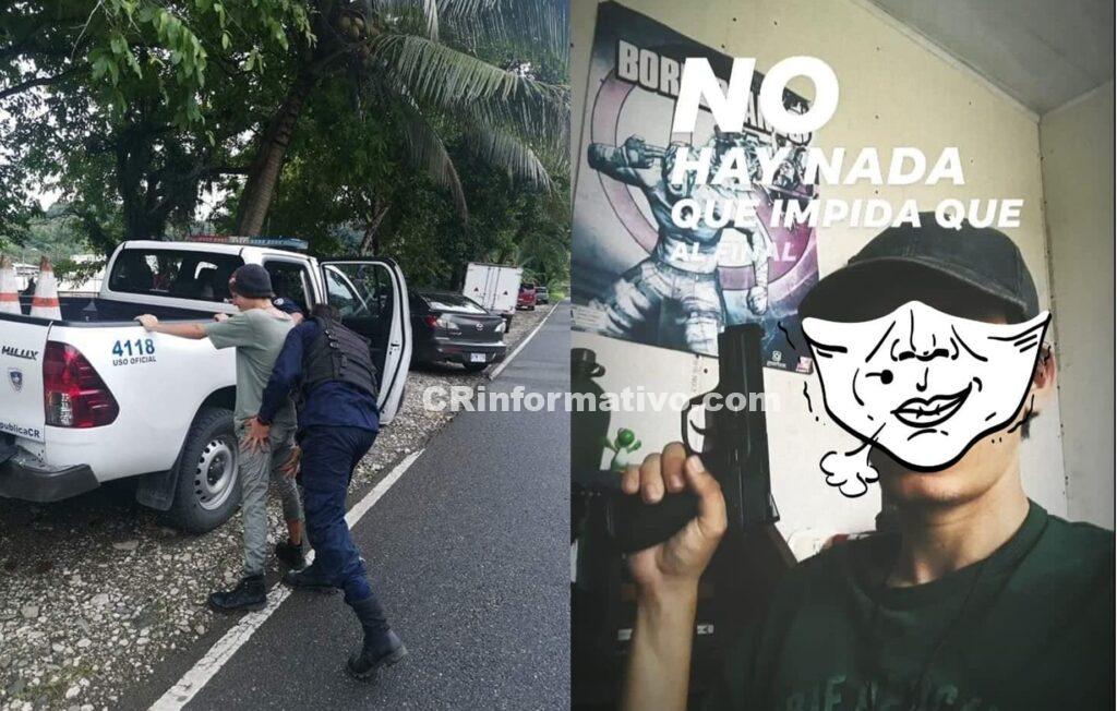 El sujeto aparece en fotografias en sus redes sociales exponiendo armas, trás una reuníon de las jefaturas de la Fuerza Pública de Golfito con la dirección del colegío, detuvieron al sujeto lo identificaron y enviarón informes del caso a la Fiscalía y OIJ..