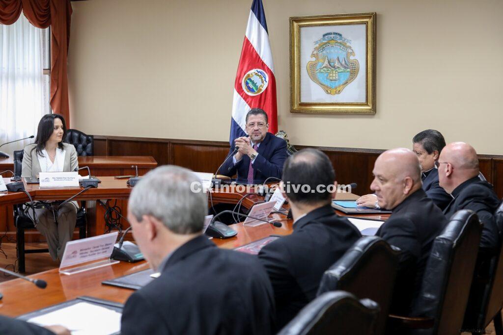 El presidente de la República, Rodrigo Chaves Robles, recibió la mañana de este jueves a los representantes de la Conferencia Episcopal de Costa Rica para conversar sobre diferentes temas país.