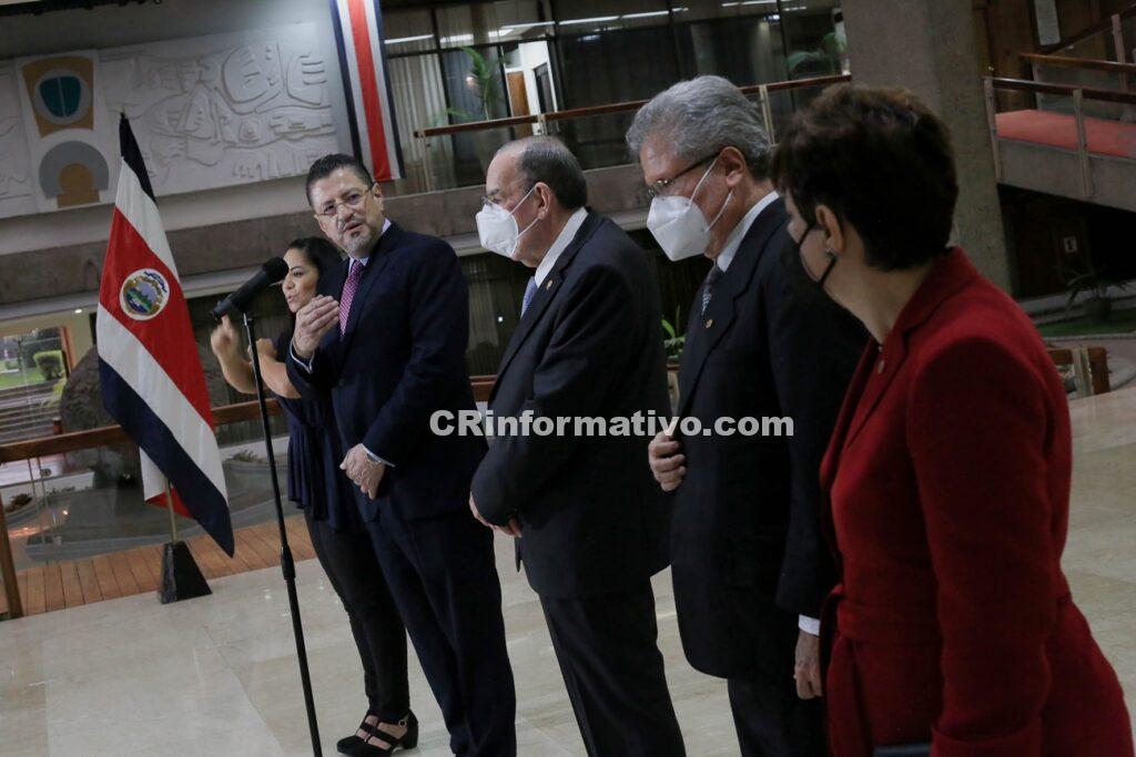 “Quisiera agradecerle de manera muy profunda a los señores presidentes y señora presidenta de los Supremos Poderes de la República por haber aceptado la invitación de venir a conversar de forma constructiva. Tomamos inventario de los desafíos que enfrenta el país, que no son menores, propusimos opciones de posibles rutas para que la patria pueda seguir adelante”, mencionó el presidente Chaves Robles.