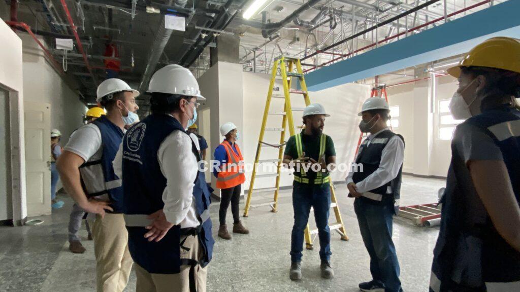 Durante la visita se recorrió el edificio principal que tiene forma de “T” y consta de cinco niveles donde se concentrará  la atención hospitalaria y donde se apreciaron los trabajos que se están desarrollando en este momento, los cuales consisten en detallas los acabados arquitectónicos en paredes, pisos y las instalaciones de los distintos sistemas electromecánicos que componen la estructura.