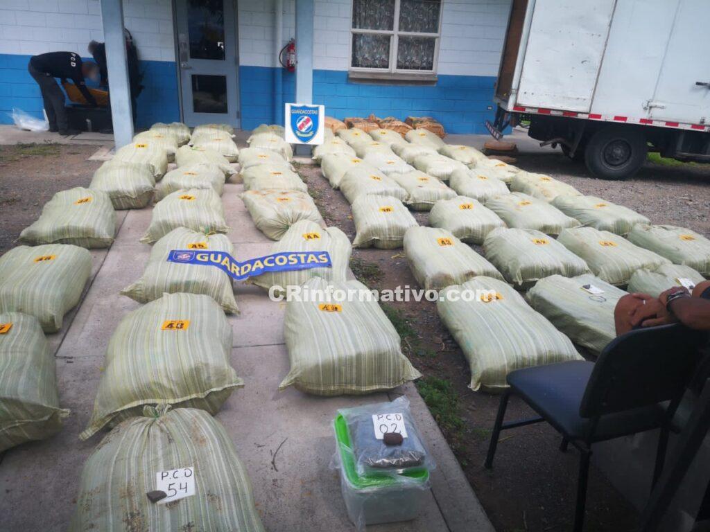 Tras consultar sobre la carga que llevaba, el conductor, el cual fue identificado como de apellidos Gamboa Vásquez, este indicó que transportaba abono, pero tras una revisión minuciosa los guardacostas determinaron que los sacos contenían marihuana.