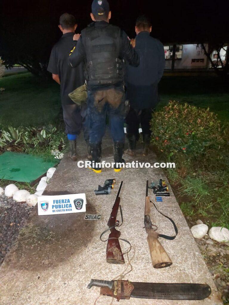 Ambos fueron puestos a disposición de la Fiscalía de Pococí junto con las armas, con respecto a las cuales no contaban con documentación alguna.