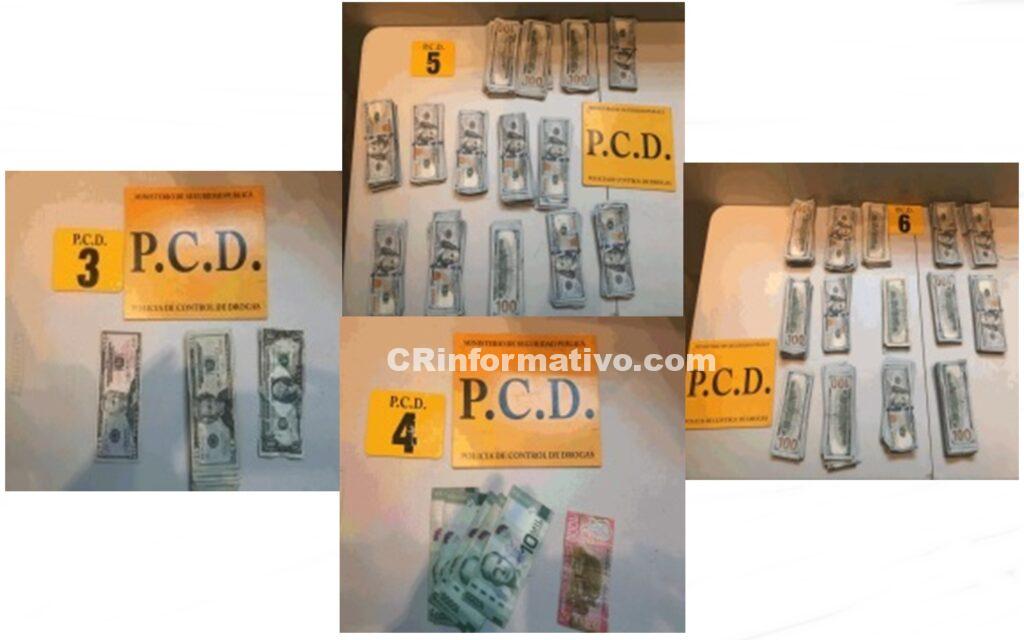 Los oficiales de la PCD efectuaron la detallada inspección, de tal forma detectaron y decomisaron 151.131,00 dólares y los 51.000,00 colones. Siendo que, 150.000,00 dólares iban ocultos en el doble forro del equipaje de mano, también 1.131,00 dólares más en una cartera y 51.000,00 colones.
