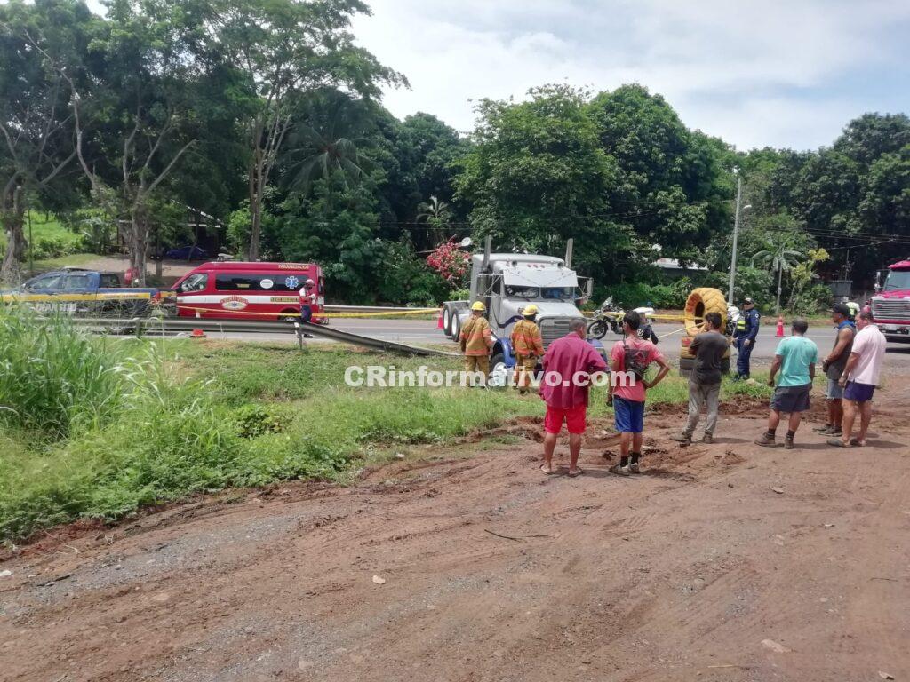 Hace algunos minutos se da un fatal accidentes por motivos los cuales se desconoce un tráiler colisiona con un motociclista llevándoselo arrastrado varios metros hasta colisionar contra la cuneta