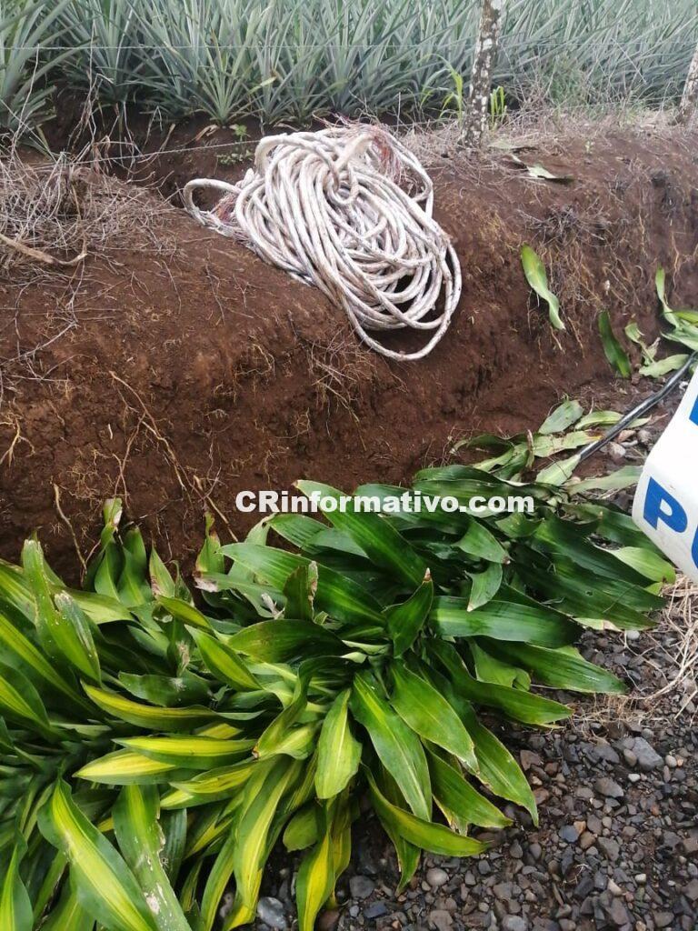 En una rápida intervención por parte de oficiales de la Fuerza Pública destacados en la delegación de Río Cuarto, zona norte del país, se logró el decomiso de una cantidad importante de cable telefónico.