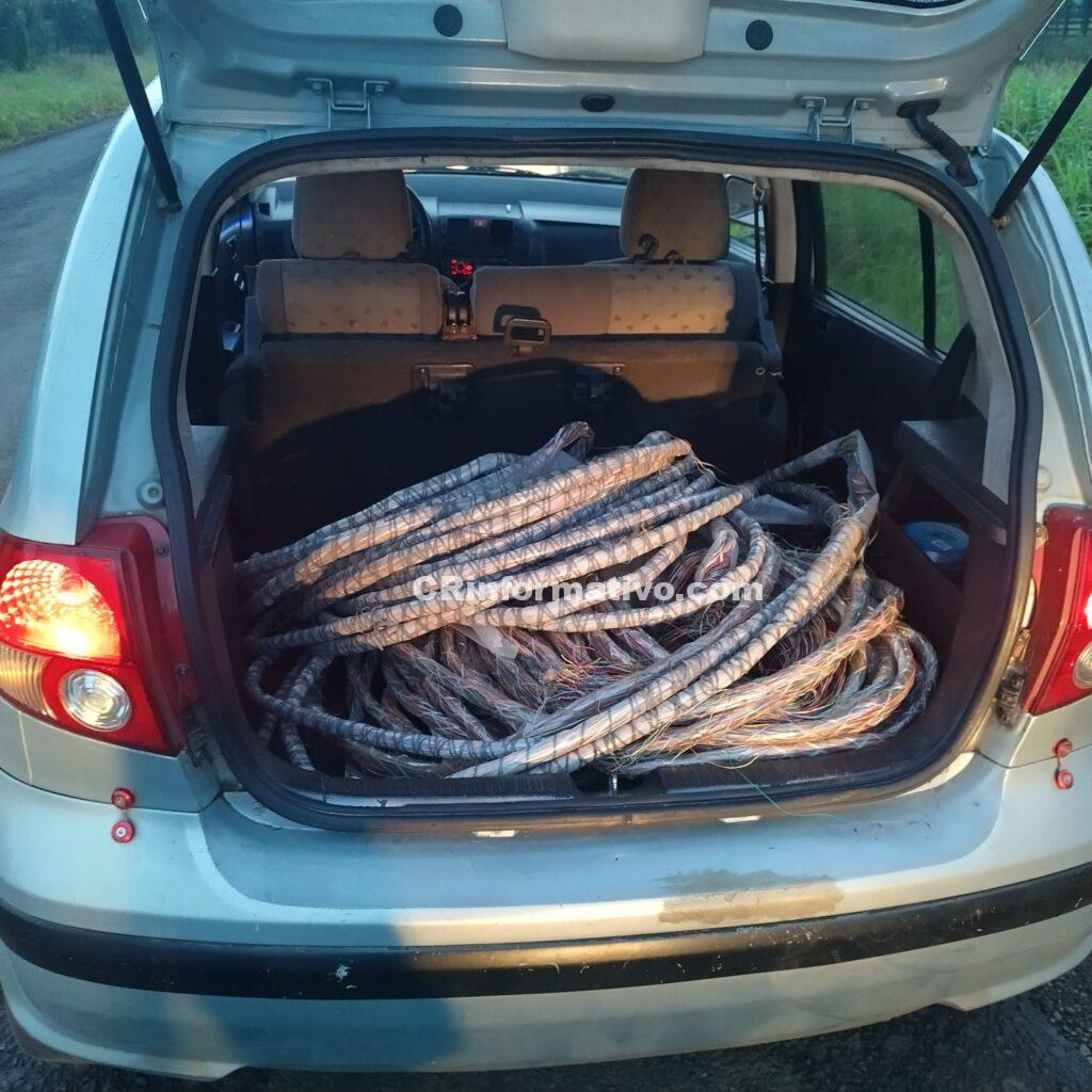 Dentro de la parte trasera del auto, los oficiales observaron una gran cantidad de cable, y en el sitio donde fue sustraído, se localizó más, por lo que aproximadamente podrían ser alrededor de 300 metros de cable telefónico.