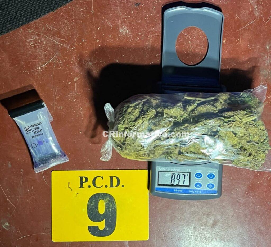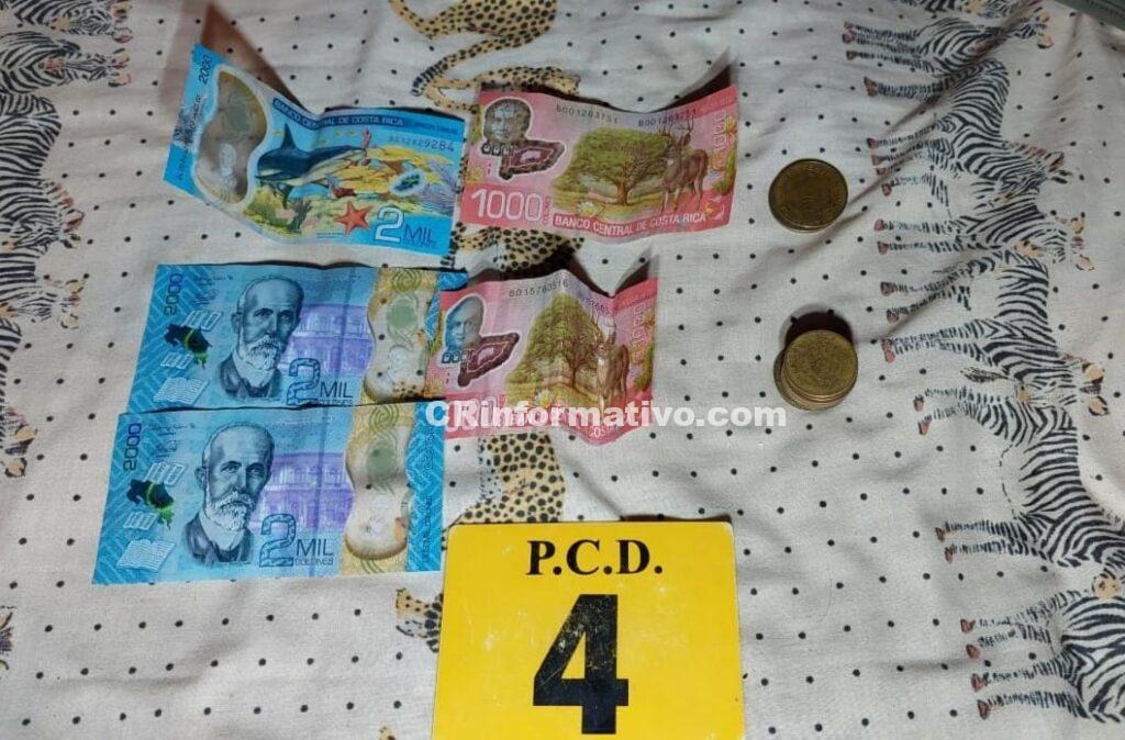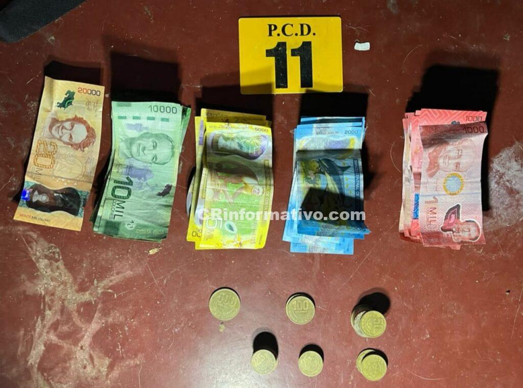 En esta operación antidrogas, los investigadores de la PCD decomisaron 219 dosis de marihuana, 61 dosis de crack, una pipeta con THC, un arma de fuego, 12 proyectiles, dos cargadores y 343.175,00 colones en efectivo.