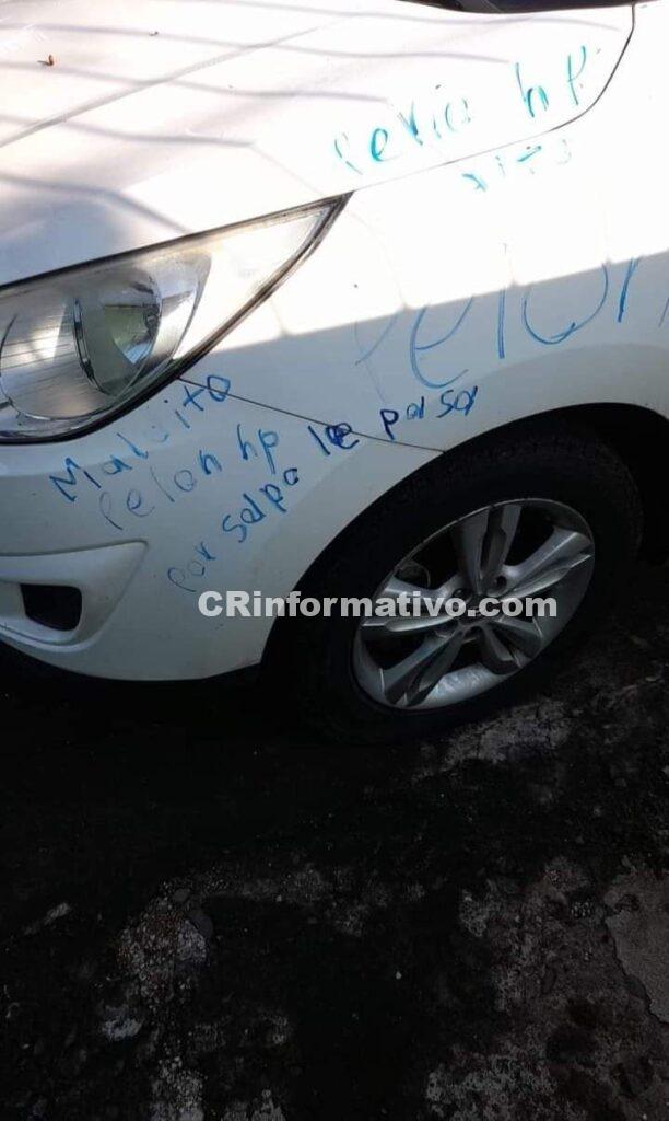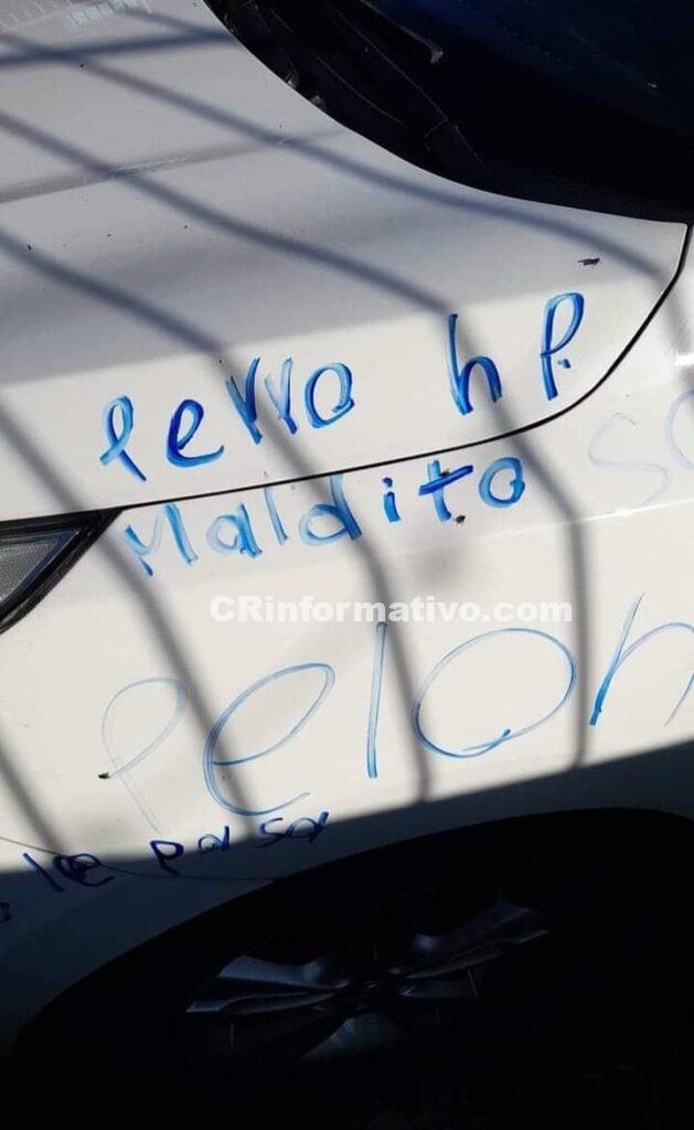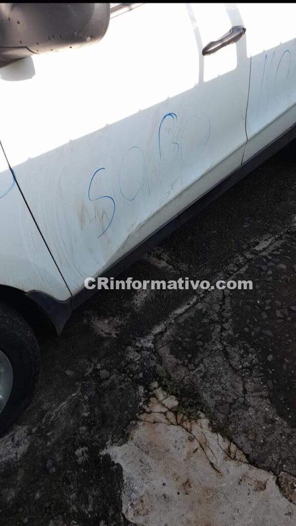 Los hechos sucedieron hoy 9 de junio 2022 en el INVU. Cuando unos delincuentes, en horas de la madrugada, cortaron las llantas delanteras de un vehículo y dejaron mensajes vulgares.