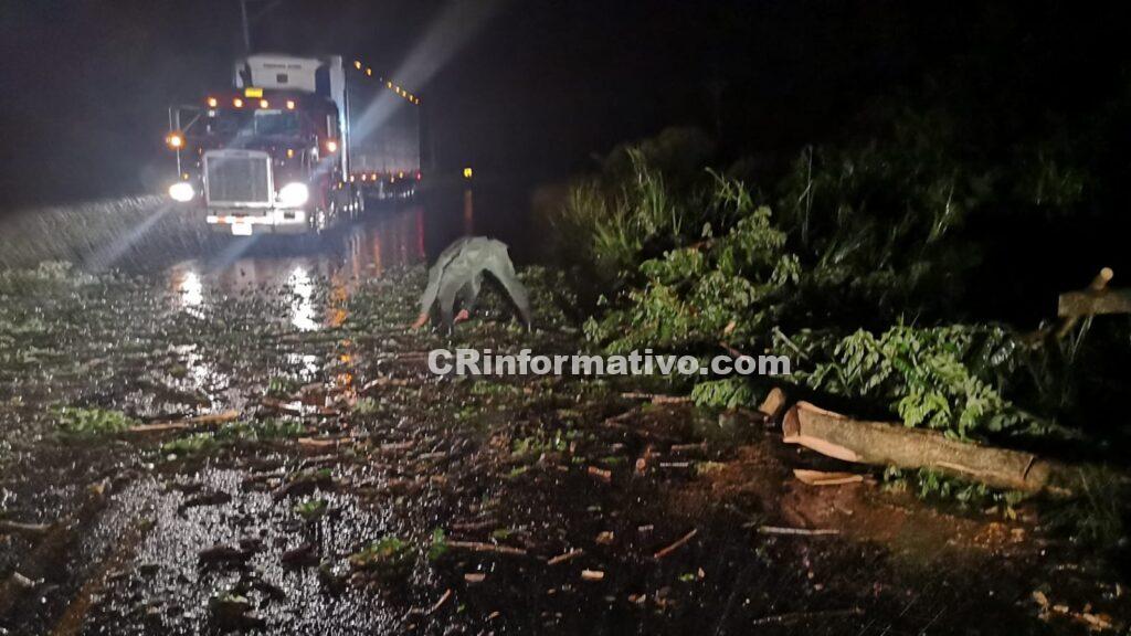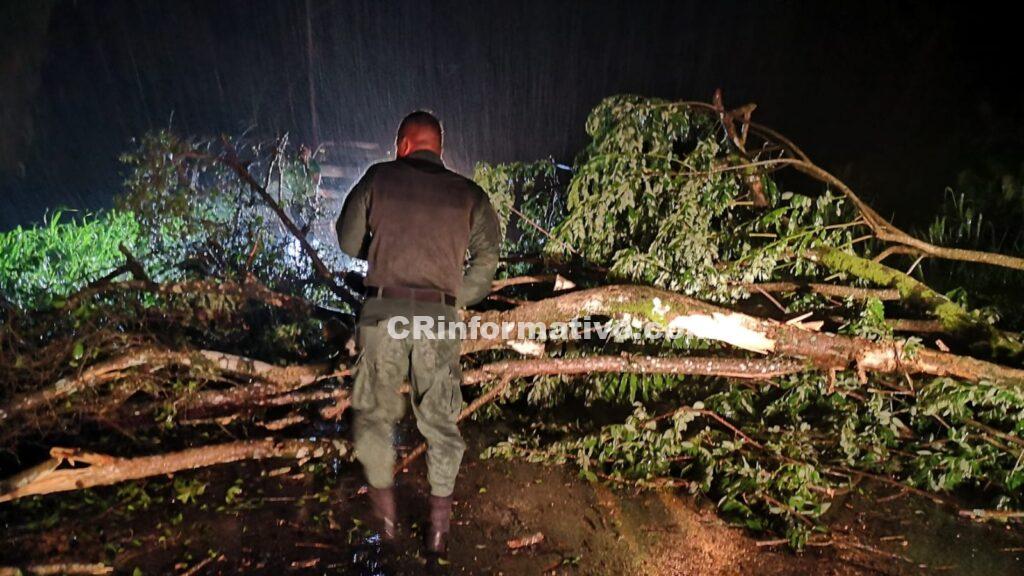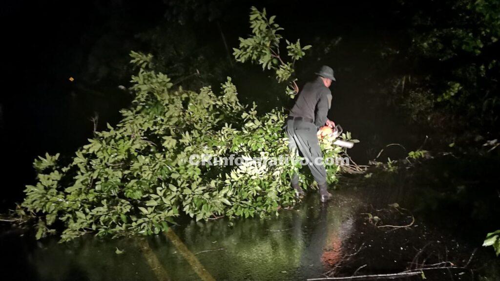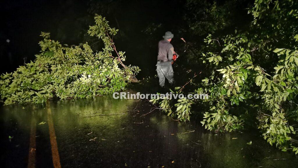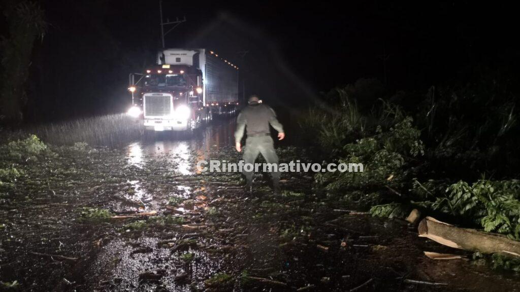 Es por ello que la noche del viernes y madrugada del sábado la Policía de Fronteras se mantuvo muy ocupada, ya que se reportó la caída de árboles en vías locales como la ruta El Jobo-Cuajiniquil.