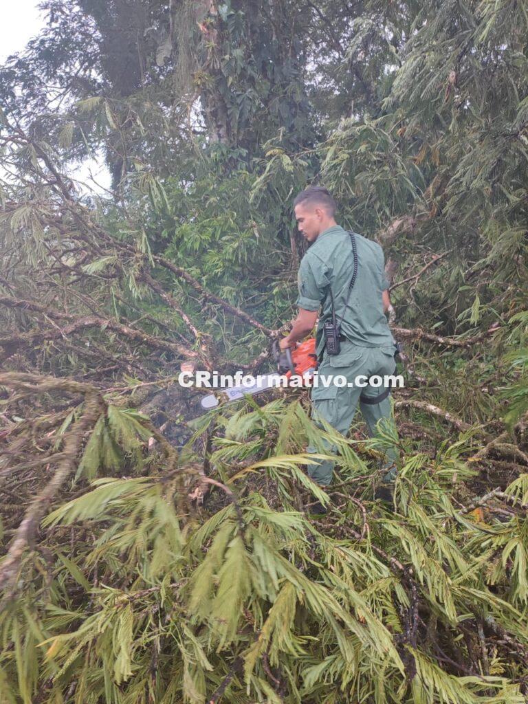 Durante un patrullaje efectuado por diversas comunidades fronterizas, ellos se encontraron con gran cantidad de árboles caídos en la vía.
