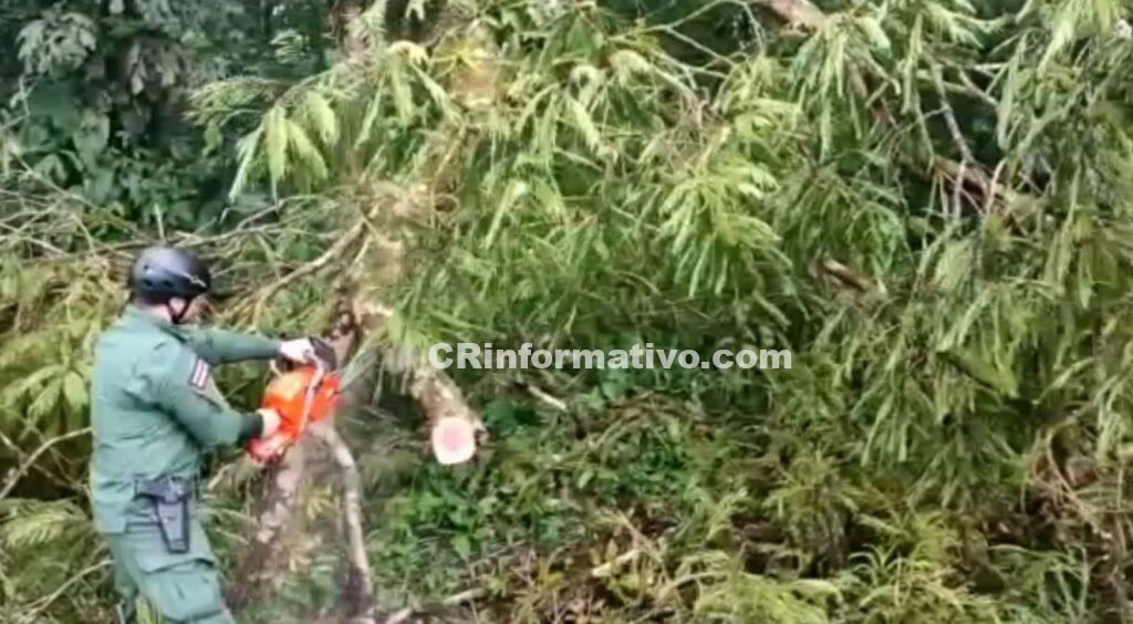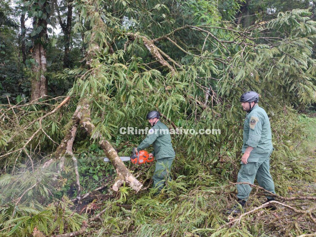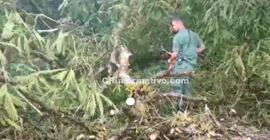 Es por ello que de inmediato se pusieron manos a la obra con motosierras y machetes para cortar los árboles y limpiar la calle de todo tipo de escombros.