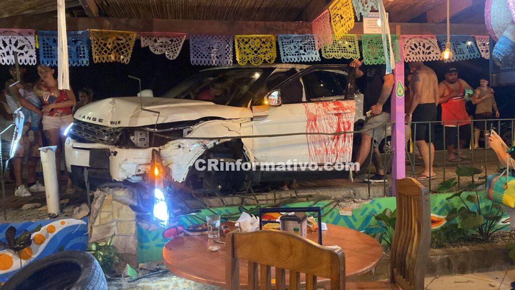 Esta noche se reportó un accidente inusual en el un automóvil ingresa al restaurante Amapola eso en jacó causando Lamentablemente varias personas heridas de gravedad