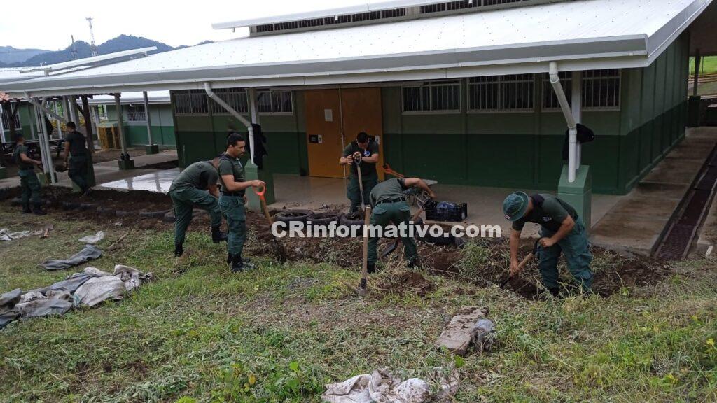 A las tareas de recuperación del Liceo de Cuajiniquil que desarrolla la ANP se sumaron estudiantes que llevan un curso de especialización fluvial que es impartido por la ANP a los oficiales de la Policía de Fronteras.