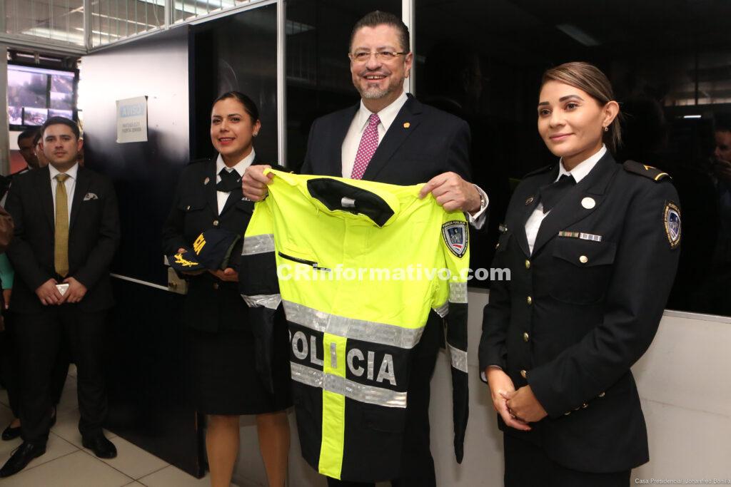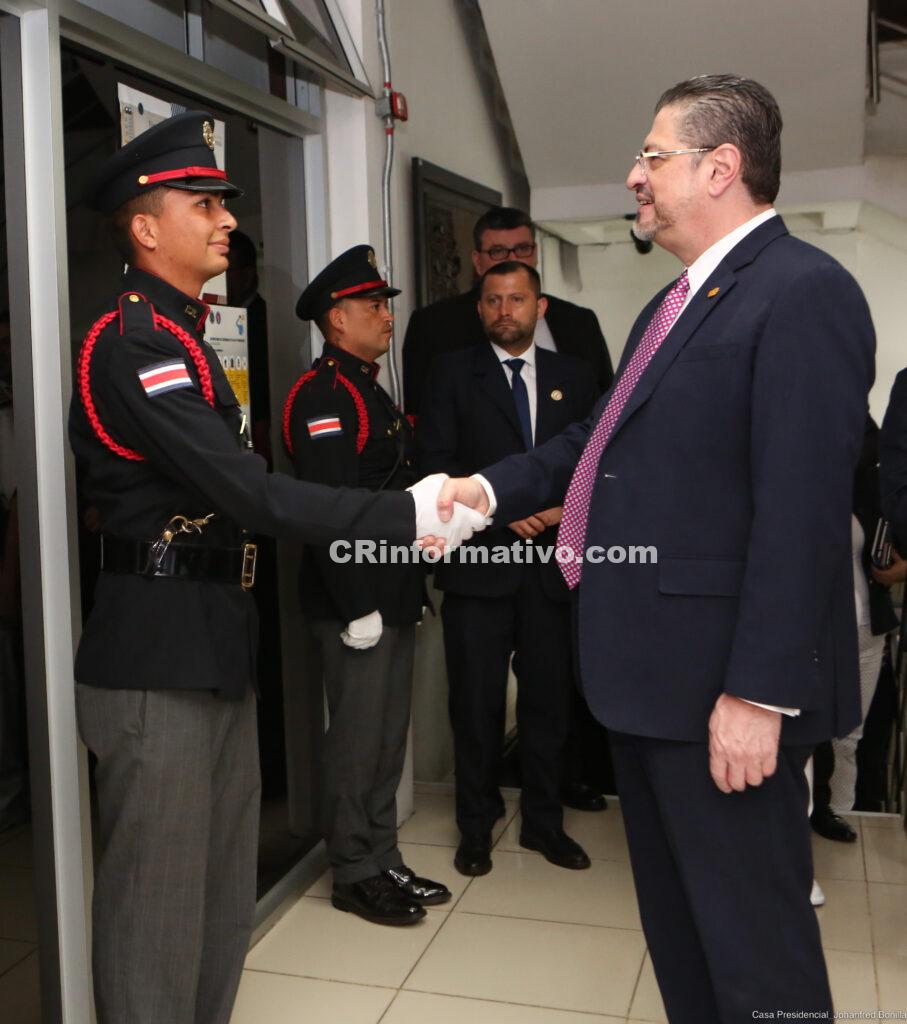 El presidente de la República, Rodrigo Chaves Robles, se comprometió con la búsqueda de mejoras de condiciones, tecnología, infraestructura y presupuestos para los distintos cuerpos policiales el país.
