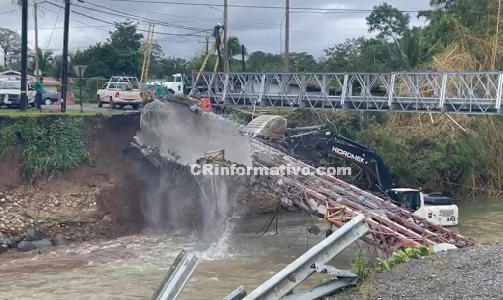Estos ¢314 millones no solo incluyen la colocación de la estructura modular metálica, para rehabilitar el paso, sino trabajos como la hinca de pilotes, la construcción de rellenos de aproximación, trabajos de limpieza y la remoción de los puentes colapsados, así como obras de protección de los márgenes del río y del puente, resumió el Ministro de Obras Públicas y Transportes, Luis Amador Jiménez.