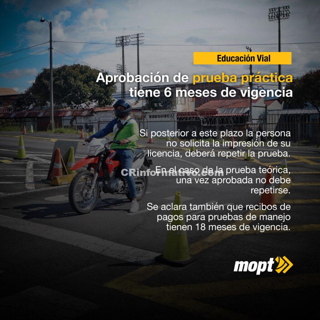 Se aclara también que recibos de pagos para pruebas de manejo tienen 18 meses de vigencia. Desde la Dirección General de Educación Vial se recuerda a todas las personas interesadas en acreditarse con conductoras que la aprobación de la prueba práctica de manejo tiene una validez limitada, señalada por la Ley de Tránsito en 6 meses posterior a su aprobación.