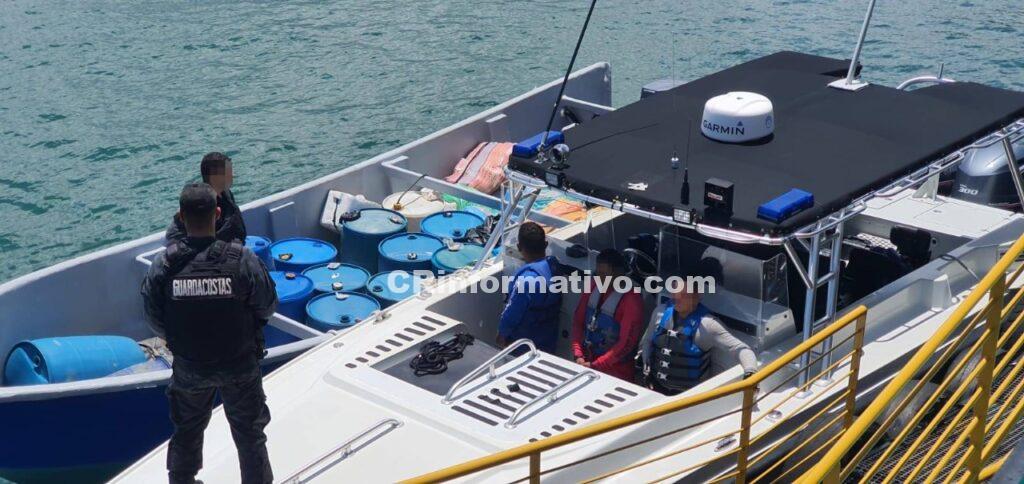 Los detenidos son dos costarricenses, uno de ellos identificado como de apellido Medina, de 49 años, de Puntarenas, y quien era el capitán de la lancha y el otro, quien vive en Limón, se apellida Banega, de 26 años, el cual cuenta con antecedentes penales por delitos sexuales y adulteración de combustible.