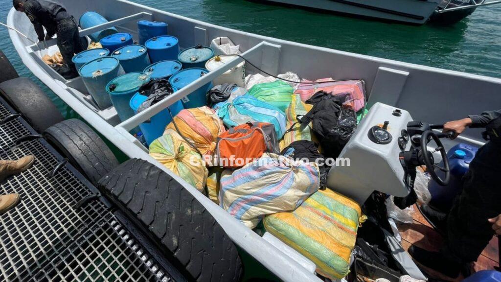 Guardacostas, Vigilancia Aérea y OIJ capturan en el Pacífico sur lancha rápida cargada con cargamento de posible marihuana y cocaína.
