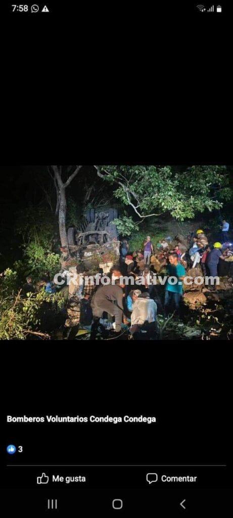 Se presume que entre los fallecidos y heridos hay migrantes que viajaban a bordo de un bus que cubre la ruta Managua/ Jalapa al colisionar con otros vehículos cayó al fondo del abismo.