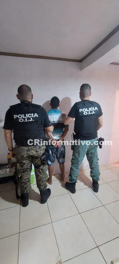 La detención se realizó tras allanar su vivienda ubicada en el sector de Santa Eduviges en Limón, donde además de su detención se logró el decomiso de evidencia para la investigación, tal como un arma de fuego larga, tipo escopeta, aproximadamente 304 gramos de aparente marihuana y unos 925 gramos de aparente cocaína.
