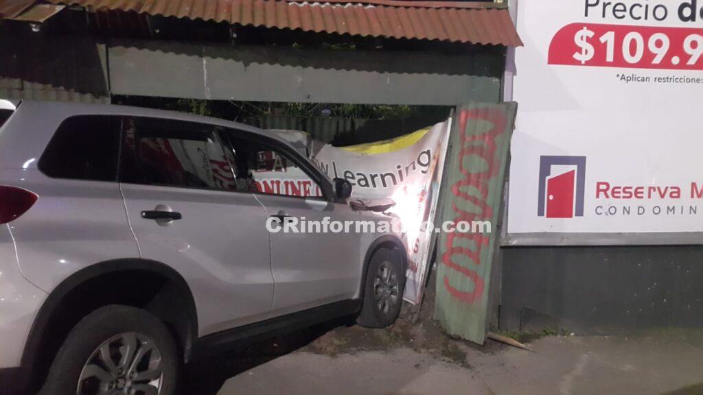 Oficiales a bordo de una patrulla lograron observar el automotor en La Isla, en el cantón de Moravia, por lo que le dieron seguimiento, en un momento determinado dos sujetos se lanzan del vehículo y este en su trayectoria impacta contra una pared de latas de una vivienda, provocando únicamente daños materiales.