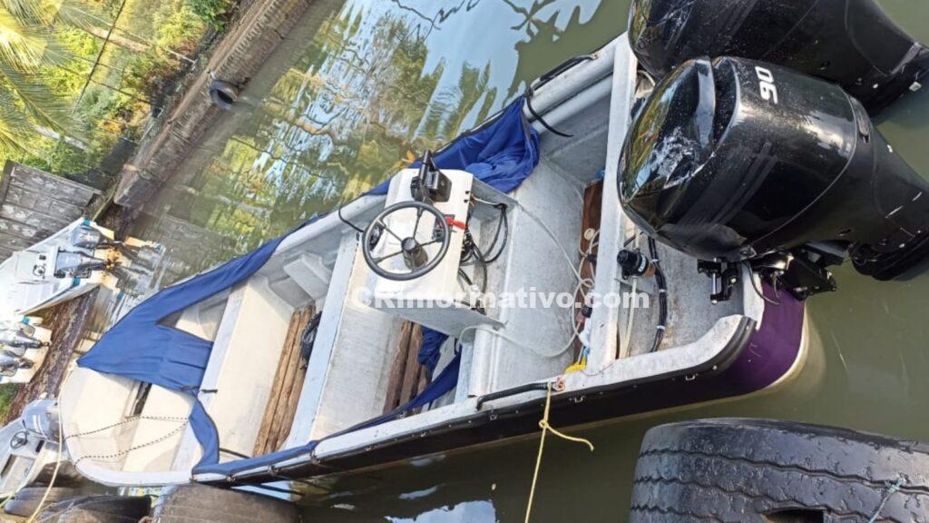Se trata de una lancha rápida de 32 pies de largo, de color blanco con morado, propulsada por dos motores de 90 HP, la cual carecía de bandera y matrícula.
