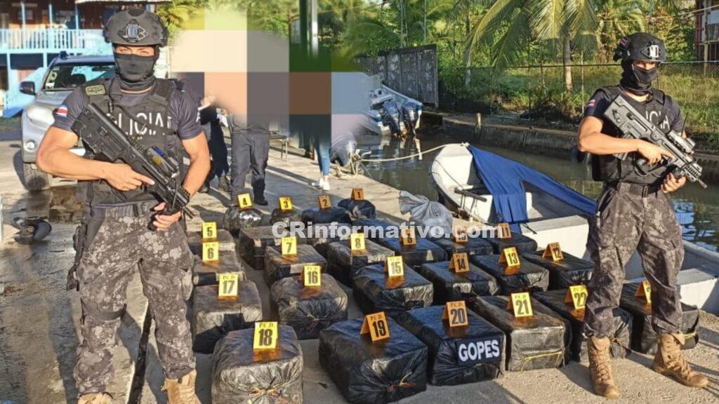 Los oficiales de la Policía Control de Drogas (PCD) del Ministerio de Seguridad Pública realizaron las diligencias que corresponden en estos casos y, luego de desarrollar las pesquisas respectivas, determinaron que era un total aproximado de 569 kilogramos de aparente cocaína y 9.5 kilogramos de supuesta marihuana (capullo).