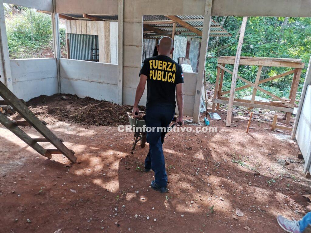 Es por ello que los policías de la Fuerza Pública de la delegación de Río Cuarto, en su tiempo libre, le ayudan con la mano de obra para terminar lo antes posible.