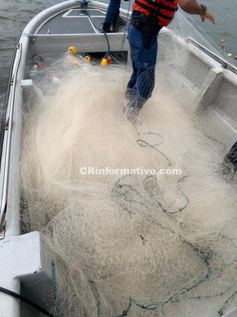 Uno de los más recientes hechos de pesca ilegal detectados por el Guardacostas de Puerto Níspero ocurrió el lunes en la desembocadura del río Abangares, donde los oficiales encontraron 700 metros de trasmallos.