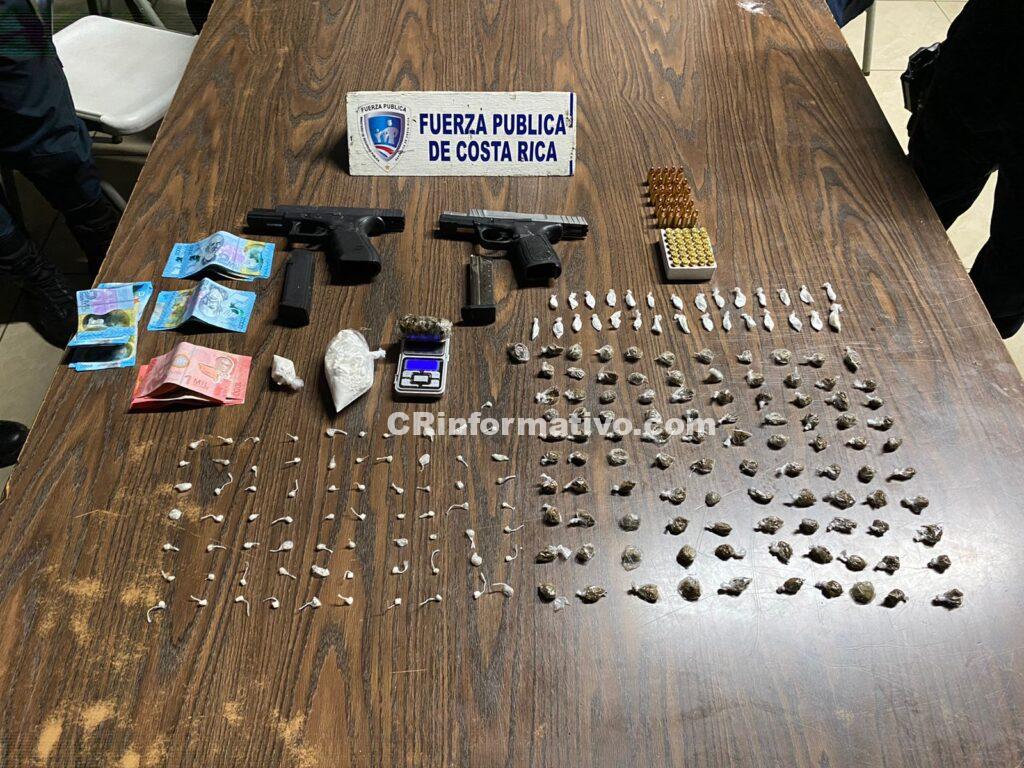 Al llegar al sitio el afectado indicó a los agentes que, un sobrino de su esposa lo agredió y amenazó con arma de fuego, por lo que autorizó el ingreso de los uniformados al inmueble en donde lograron el arresto del supuesto agresor de apellido Barrantes y, además, decomisaron tres armas de fuego y 33 gramos de aparente marihuana.