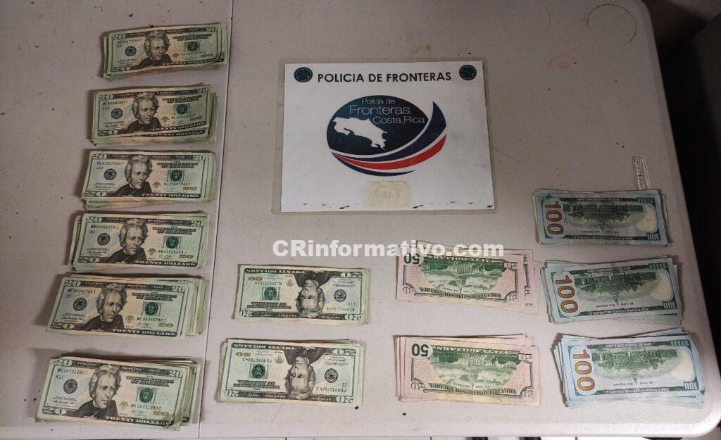 Por tal razón, el conductor del vehículo de apellidos Arauz Cabalzeta, de nacionalidad nicaragüense, con cédula de residencia costarricense, de 46 años y sin antecedentes, fue detenido y presentado ante el Ministerio Público. En tanto, el dinero quedó decomisado.