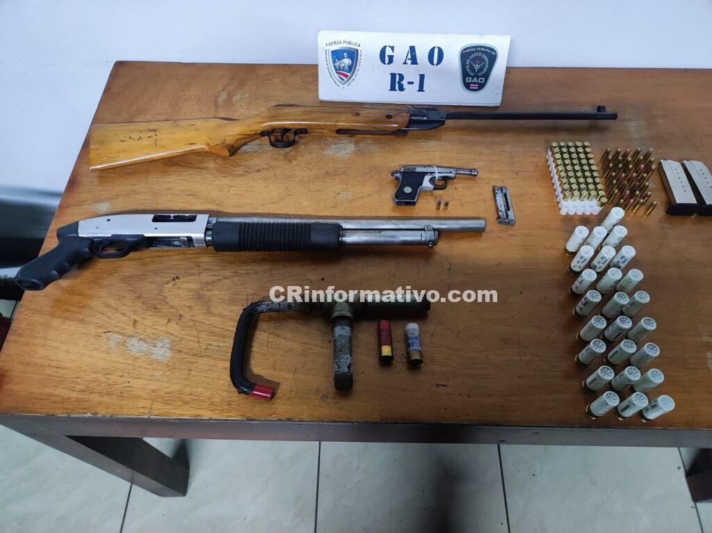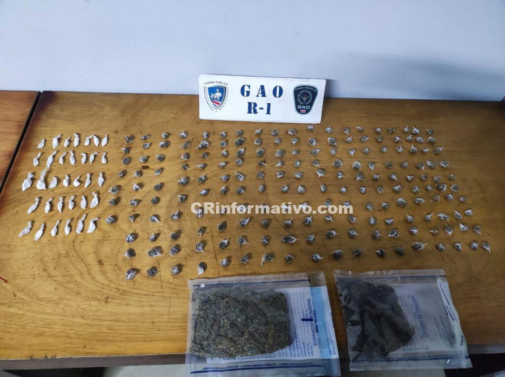 Anoche, en Torre Molinos, La Paz, Desamparados, oficiales de la Fuerza Pública destacados en el Grupo de Apoyo Operacional (GAO) decomisaron drogas y armas.
