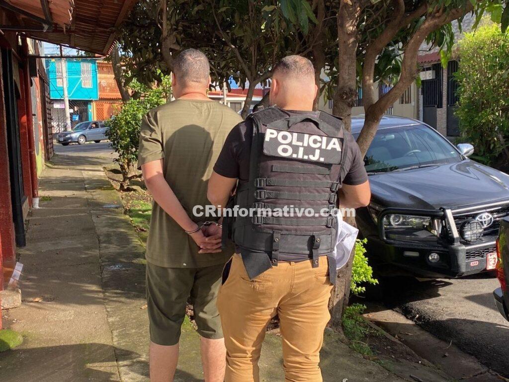 La detención se realizó tras allanar su casa, ubicada en Heredia, San Francisco El Roble, donde se decomisó evidencia importante para la investigación, tal como teléfonos celulares y vestimentas, además un arma de fuego y droga.
