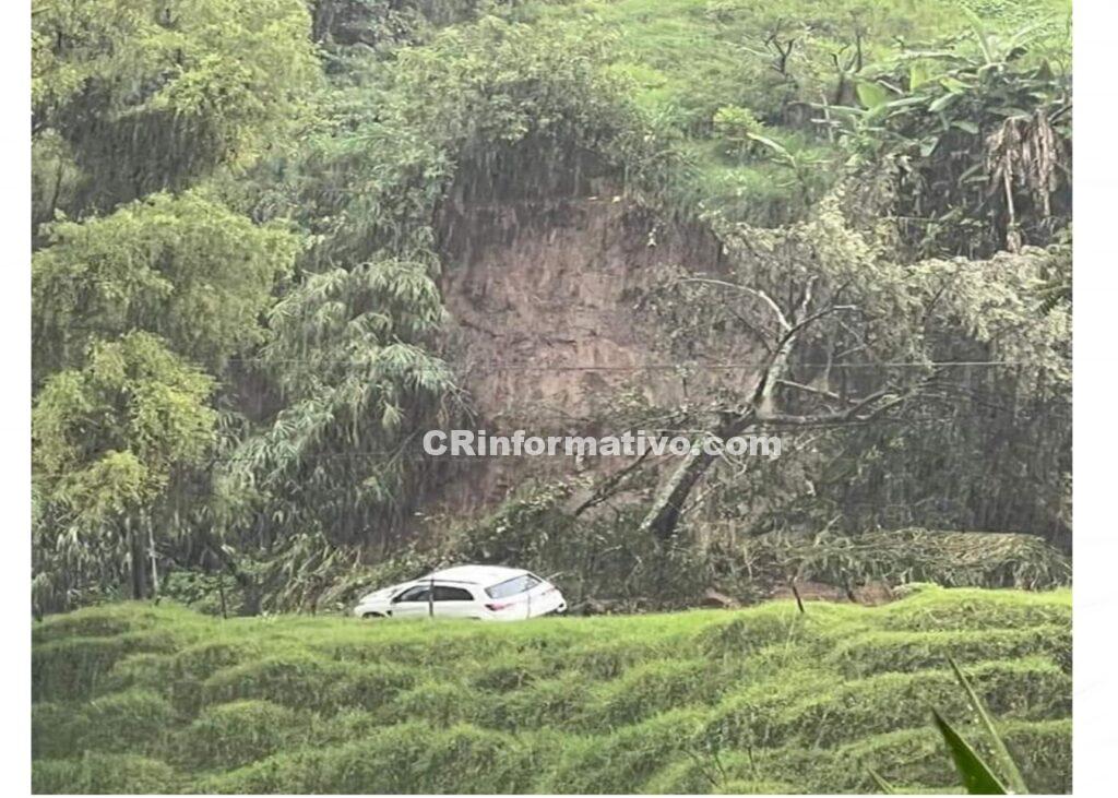 Deslizamiento arrastra vehículo con sus ocupantes a bordo en El Espino, Zarcero.