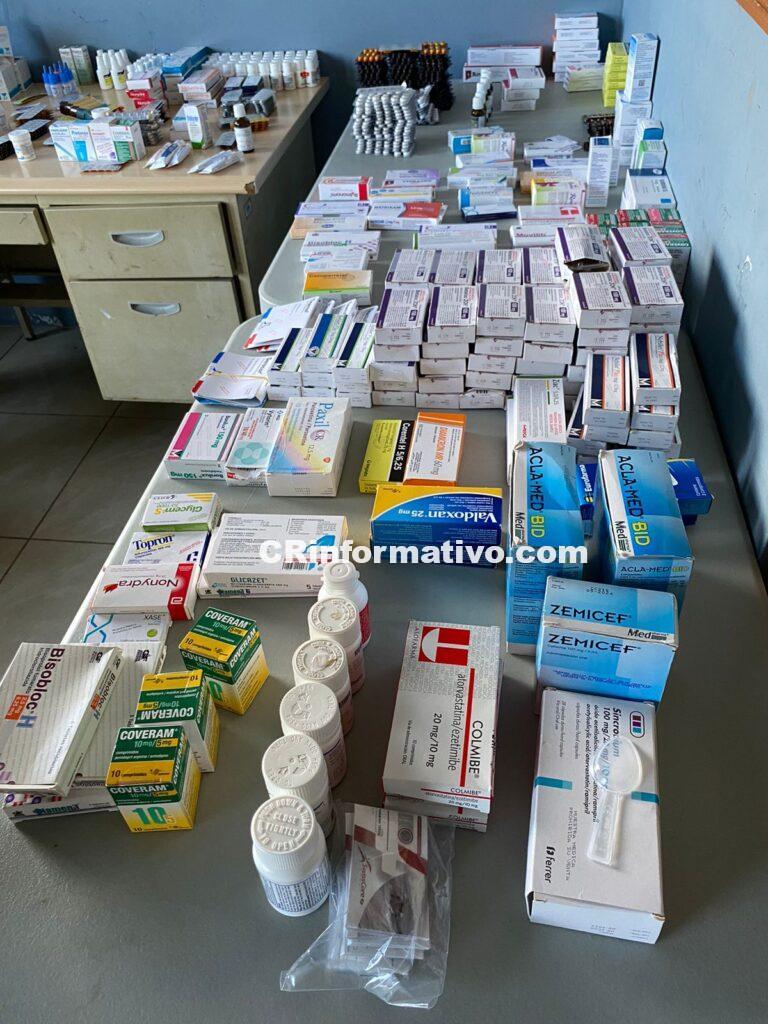 Dentro de la mercadería incautada, se encontraron analgésicos, antihistamínicos, laxantes, antiinflamatorios y otros, algunos tenían membrete de la Caja Costarricense del Seguro Social.