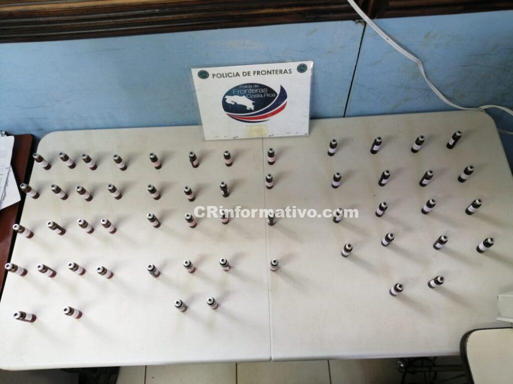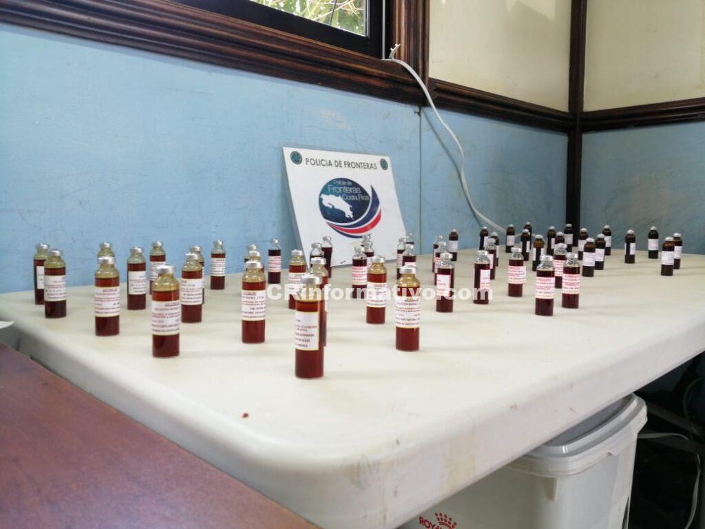 Oficiales de la Policía de Fronteras, destacados en el cantón de Los Chiles, frontera norte, evitaron que gran cantidad de fármacos contrabandeados, entre estos 18 frascos que contenían morfina, pusieran en riesgo la vida de potenciales consumidores.