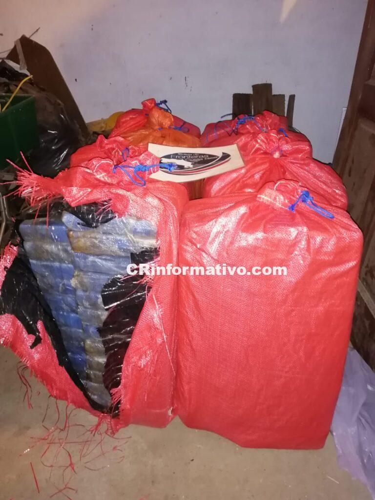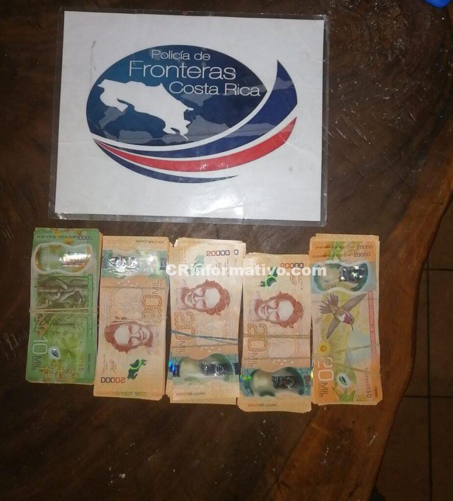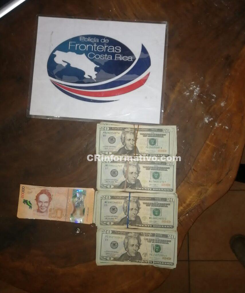 Fue así como las autoridades encontraron 296 paquetes con posible cocaína, con un peso de aproximadamente un kilo cada uno, 5.521.000 colones, 6.360 dólares.