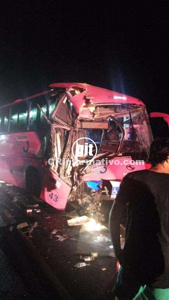 Hace pocos minutos se nos reporta un accidente de tránsito entre un autobús de la empresa Tracopa y un camión.