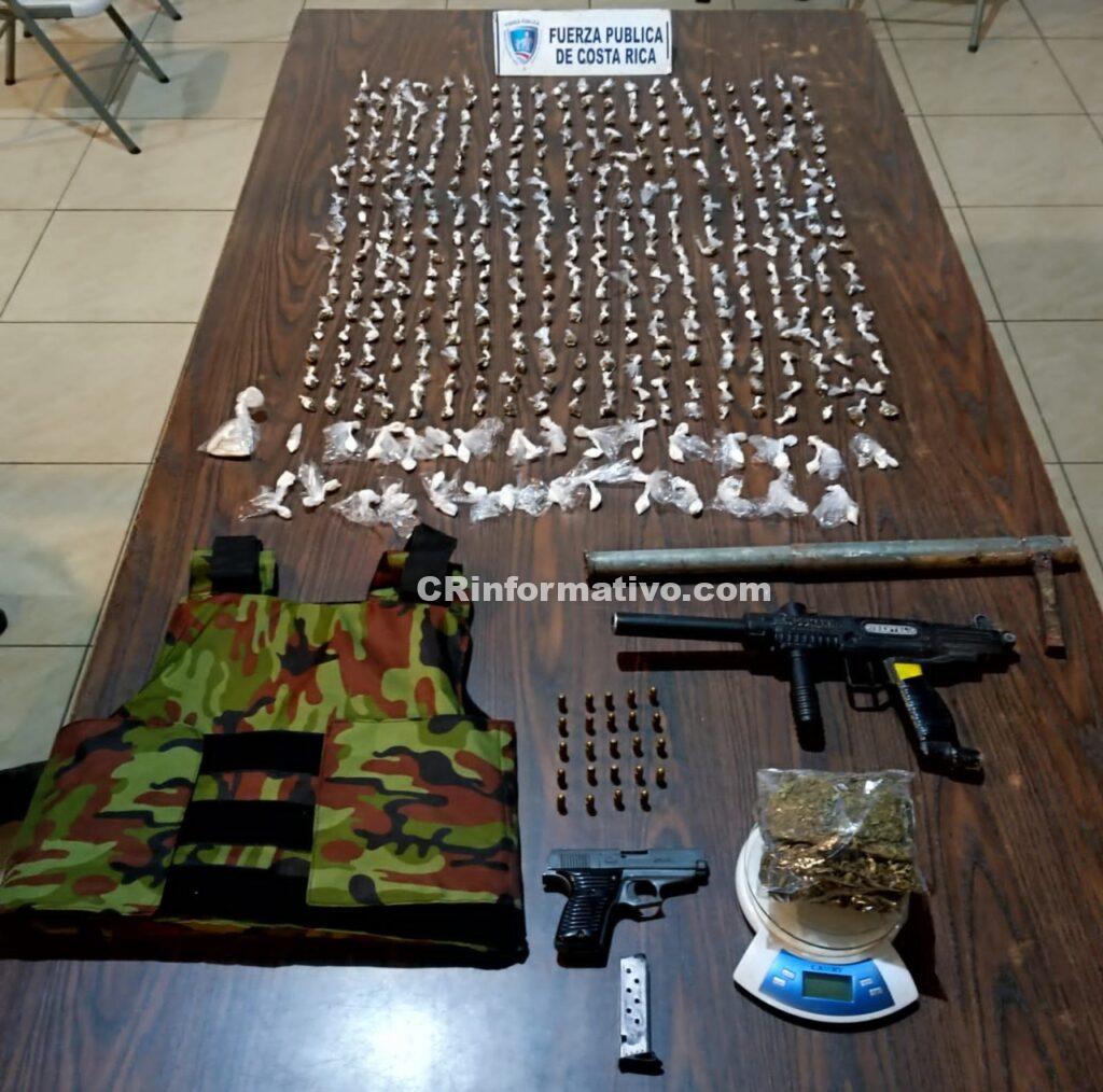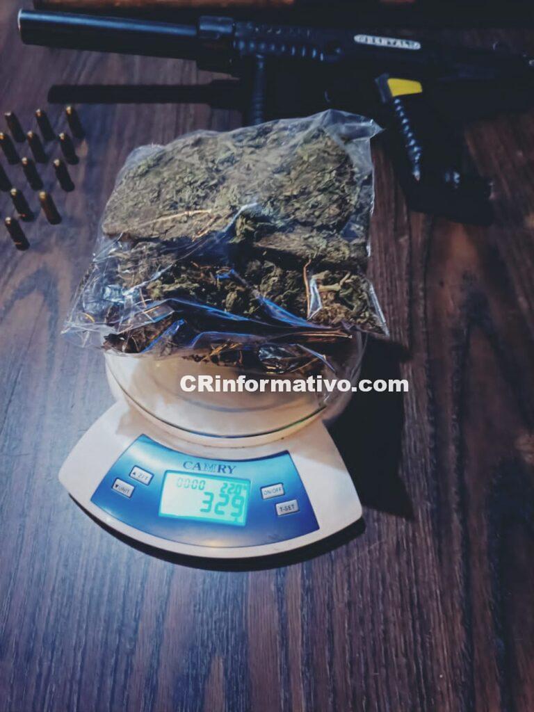 Los policías realizaron una revisión del sitio y encontraron una bolsa que contenía dos armas de fabricación casera, una pistola, un chaleco antibalas, 24 municiones, 360 dosis y 329 gramos de marihuana, 30 gramos de pasta de crack y 29 dosis de aparente cocaína, todo fue decomisado para ser entregado en la fiscalía.