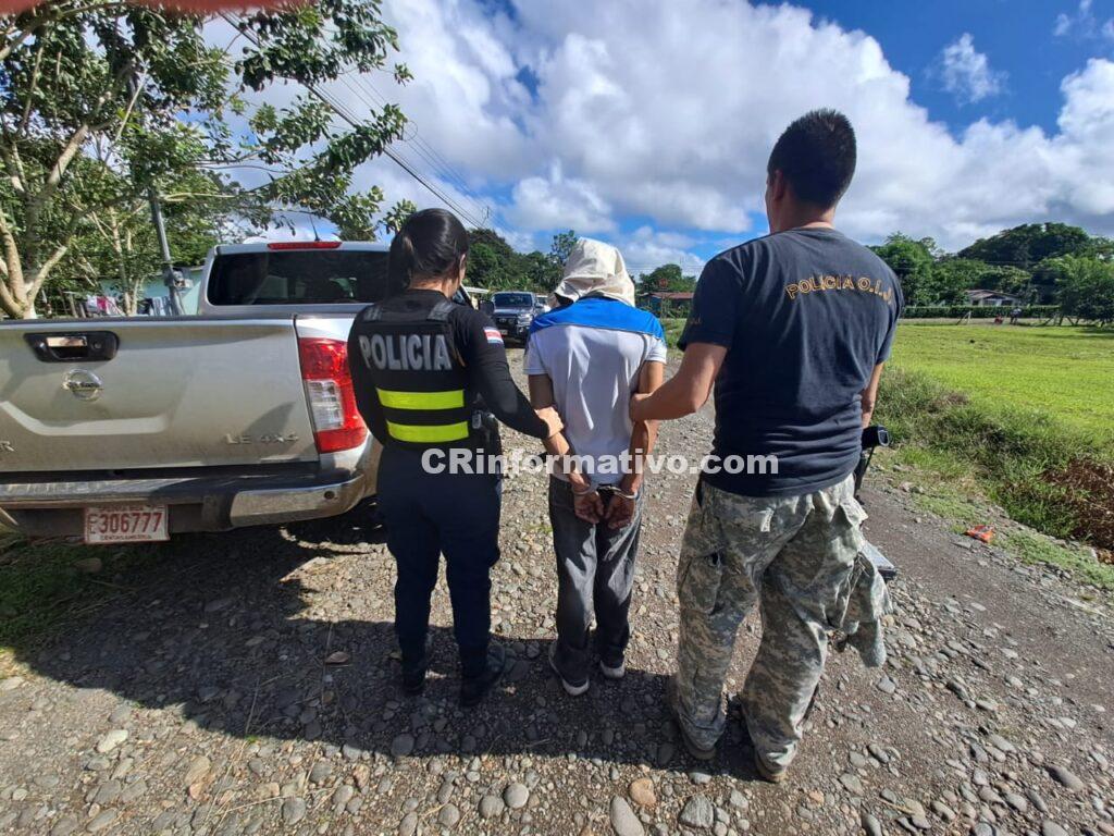 La mañana de este martes, los agentes del Organismo de e Investigación Judicial (OIJ), destacados en la Subdelegación Regional de Sarapiquí, detuvieron a un hombre de 35 años, quien figura como sospechoso del delito de Venta de Droga.