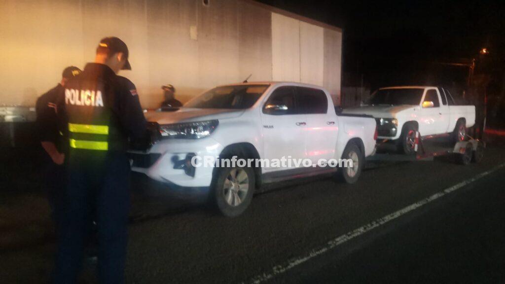 Oficiales de la Fuerza Pública en Coyolar, Orotina detuvieron anoche al chofer de un vehículo, quien llevaba remolcado otro automotor.