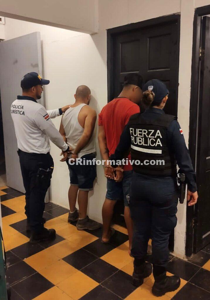 Un trabajo en conjunto entre oficiales de Fuerza Pública destacados en Talamanca y la Policía Turística permitió la captura de dos sujetos a quienes se les relaciona con un asalto a un supermercado.