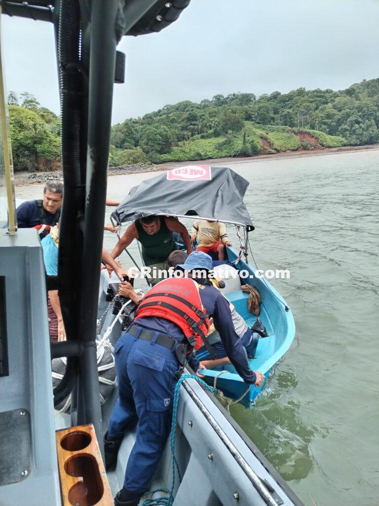 El personal del Guardacostas remolcó la lancha de los pescadores hasta un sitio seguro donde todos quedaron a salvo.
