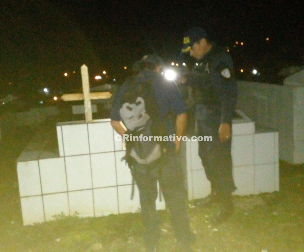 El cumplimiento tuvo lugar a las 8:50 de la noche del domingo en el cementerio del distrito de Sabalito, cantón de Coto Brus, cuando los policías que participaban en el citado operativo ingresaron al camposanto local para corroborar si había presencia de personas que estuvieran realizando alguna actividad delictiva.