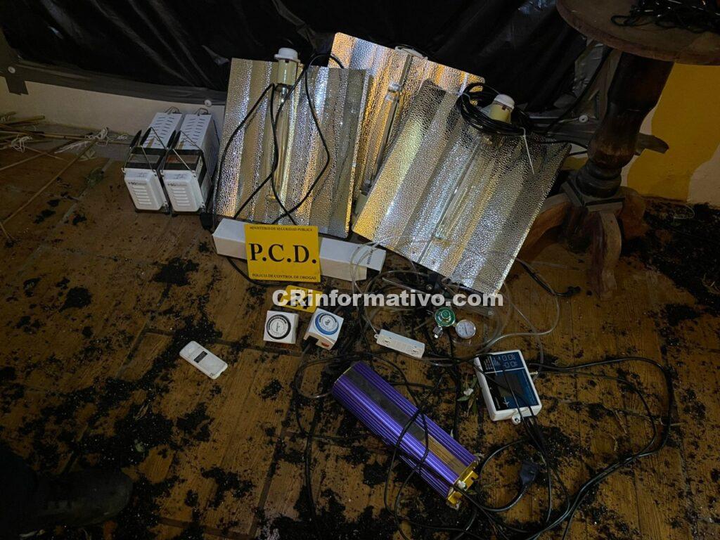 En tres allanamientos efectuados por la PCD en Matina Bustos de San Roque, Salto Oeste y Cañas Dulces, Liberia, los investigadores capturaron a los integrantes de una organización dedicada al aparente cultivo de marihuana en ambiente controlado o laboratorio.